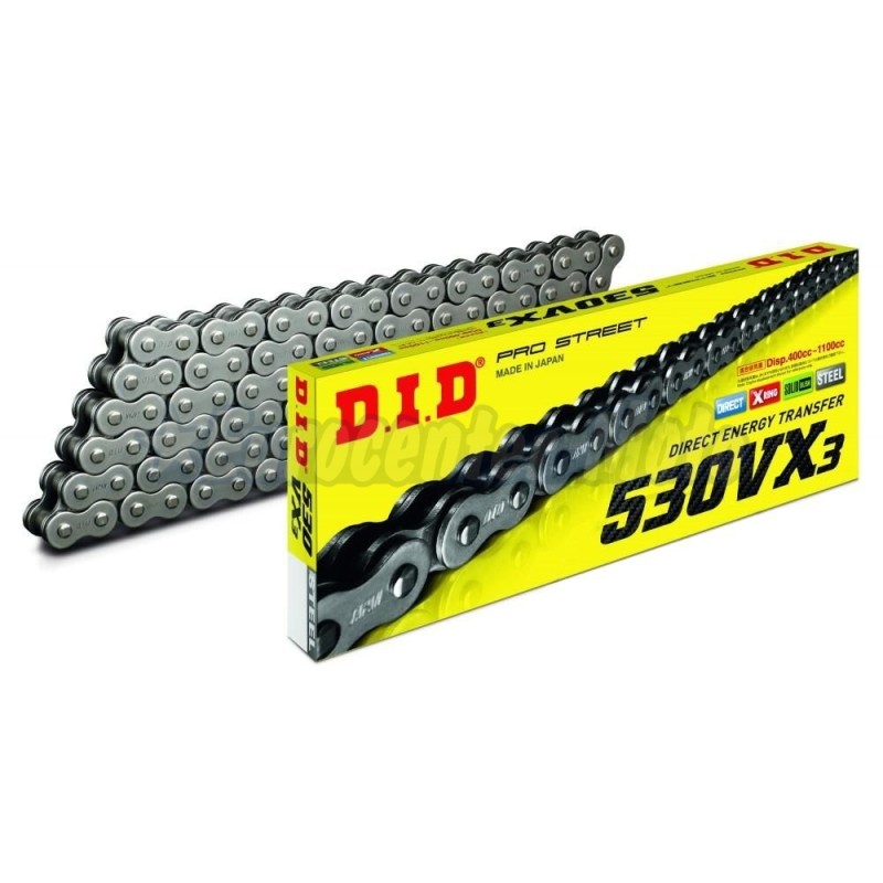 La cadena de la serie VX es un excelente recambio de la cadena OEM y es la más popular y utilizada tanto en motocicletas de carretera como Off-Road.