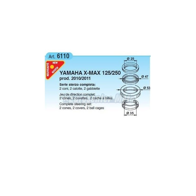 Kit rodamientos dirección Yamaha X-Max 125/250 de 2010 a 2013
