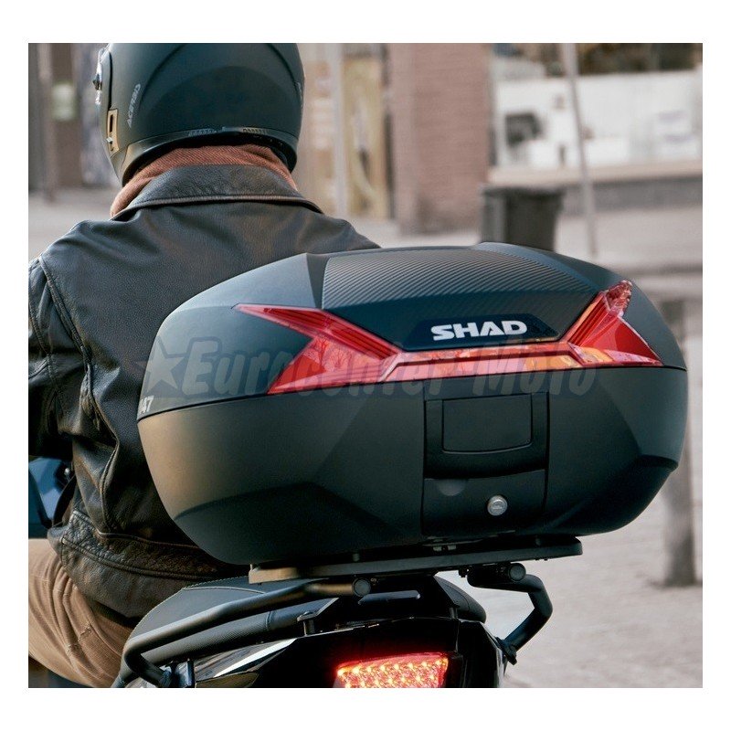 El SH47 es un top case diseñado en Barcelona y con forma aerodinámica, que presenta un aspecto moderno y elegante. Tiene el tamaño perfecto para moverse por la ciudad o para viajes más largos, lo que permite adaptarlo tanto a scooters como a motocicletas de media y gran cilindrada. Fabricada con polipropileno reforzado de alta calidad, tiene capacidad para 2 cascos integrales, además de accesorios de viaje.