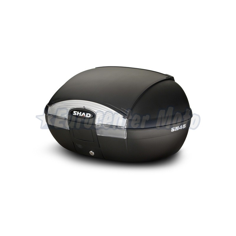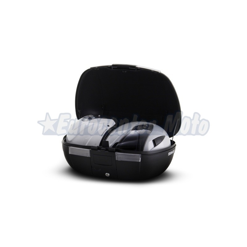 La SH45 es una maleta robusta, compuesta de polipropileno reforzado de alta calidad. El baúl resiste temperaturas extremas y protege la carga interior de impactos y caídas . Con capacidad para dos cascos integrales y un diseño de formas curvas y catadióptricos ahumados, dispone del tamaño perfecto tanto para moverse por la ciudad como para trayectos más largos, lo que le permite adaptarse tanto a scooter como a motos de media y gran cilindrada.