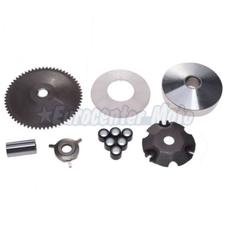 Variador completo con polea, variador, rampa, rodillos y trinquete de arranque para motores chinos 50c.c de 4 tiempos.